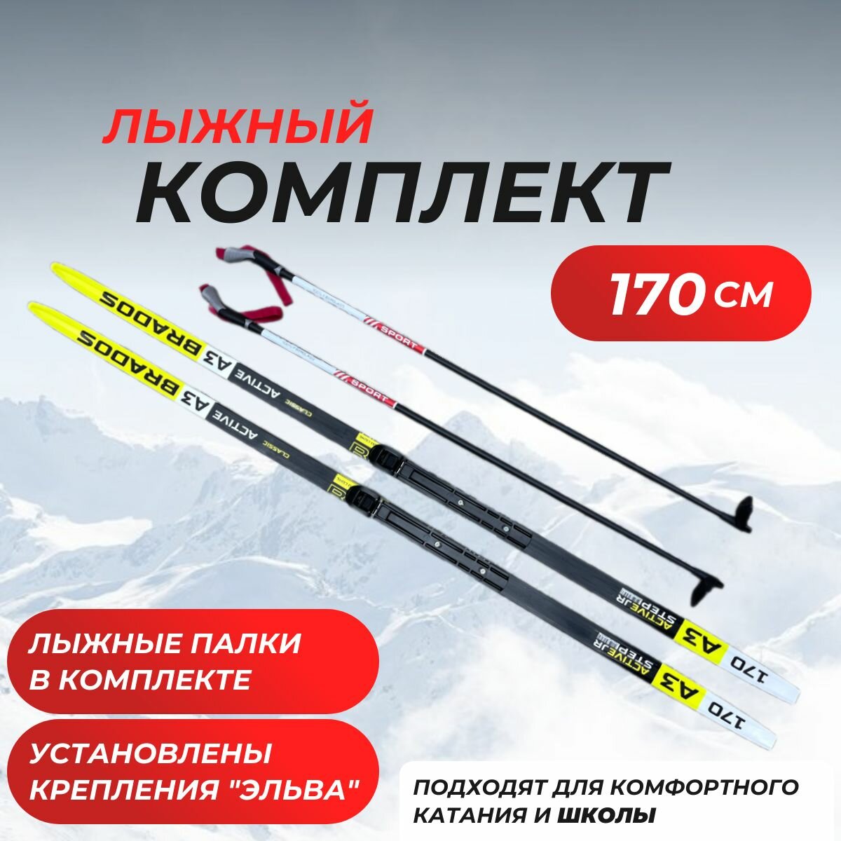 Купить Комплект лыж 170 (с насечкой) с палками (стекловолокно) и креплениями NNN Elva с доставкой по всей России.