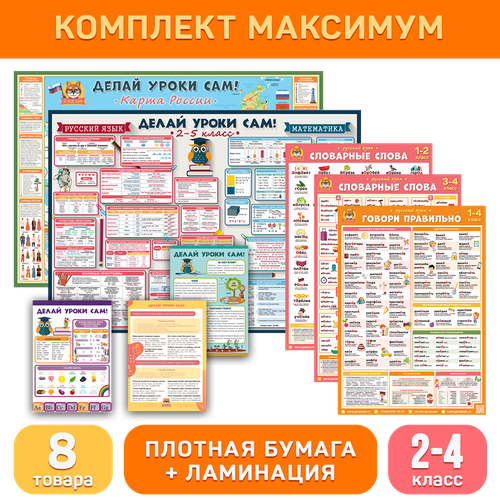 Комплект Максимум состоит из 8-ми товаров ДЕЛАЙ УРОКИ САМ для 2-4 класса: