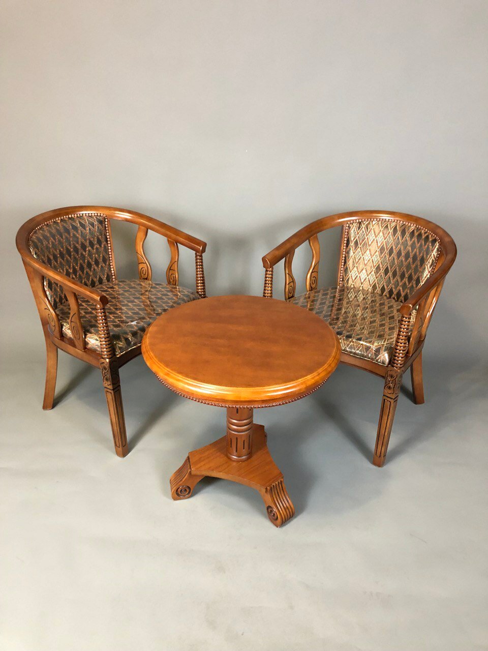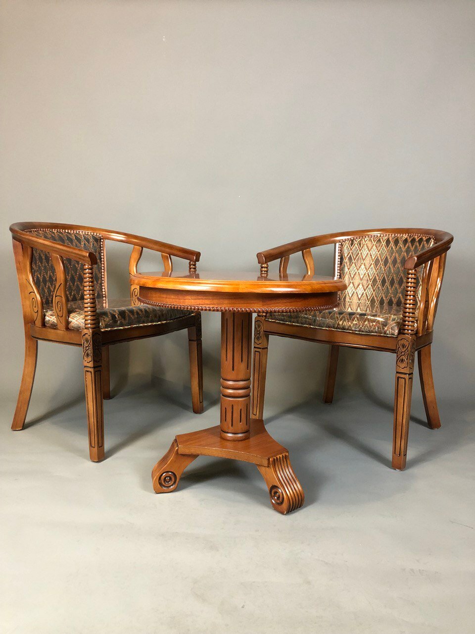 Комплект МАО-2 чайная группа от DOMKORLEONE, массив гевеи, текстиль, цвет орех (walnut), сэт из 2-х кресел и 1-го стола.: сравнение цен, характеристики, фото, актуальное наличие и цены.