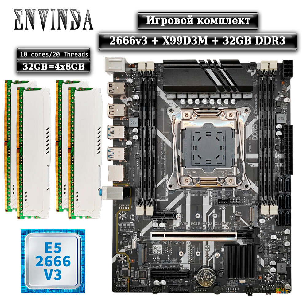 Купить Комплект материнская плата Envinda X99 + Xeon 2666V3 + 32GB DDR3 ECC 4x8GB White с доставкой по всей России.