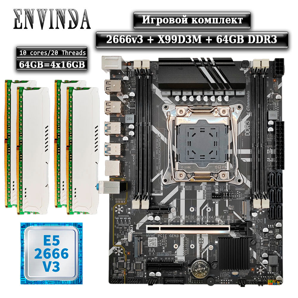 Купить Комплект материнская плата Envinda X99 + Xeon 2666V3 + 64GB DDR3 ECC 4x16GB White с доставкой по всей России.
