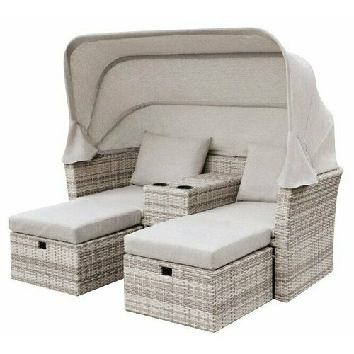 Alfa Garden Комплект мебели трансформер AFM-330 Изделие сплетено вручную нашими мастерами под жестким контролем качества на каждом этапе производства. Лоза максимально приближена по рельефу и текстуре к естественному материалу. Идеально подходит для использования на улице и внутри помещения в любую погоду. Не боится воды, солнца и минусовой температуры. Особенности: Траснформер. Подушки в комплекте. Подушки в комплекте (4+2). Размеры: Диван: W172xD84.5хH74.5 см. Пуфы: W57xD57хH31 см.
