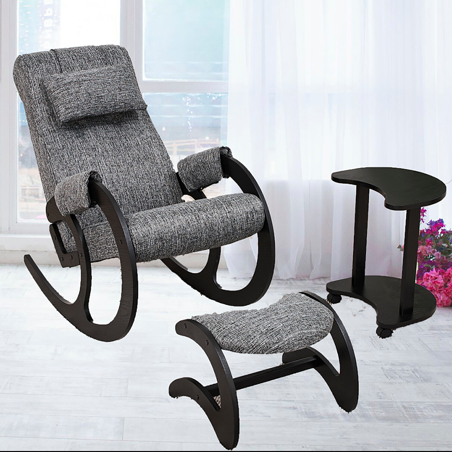 Кресло качалка, подушка, банкетка для ног, журнальный столик, фурнитура, инструкция