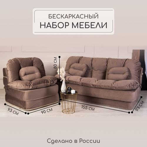 Купить Комплект мебели Диван и Кресло раскладной, бескаркасный, набор какао с доставкой по всей России. Комплект мебели Диван и Кресло раскладной, бескаркасный, набор какао: сравнение цен, характеристики, фото, актуальное наличие и цены.