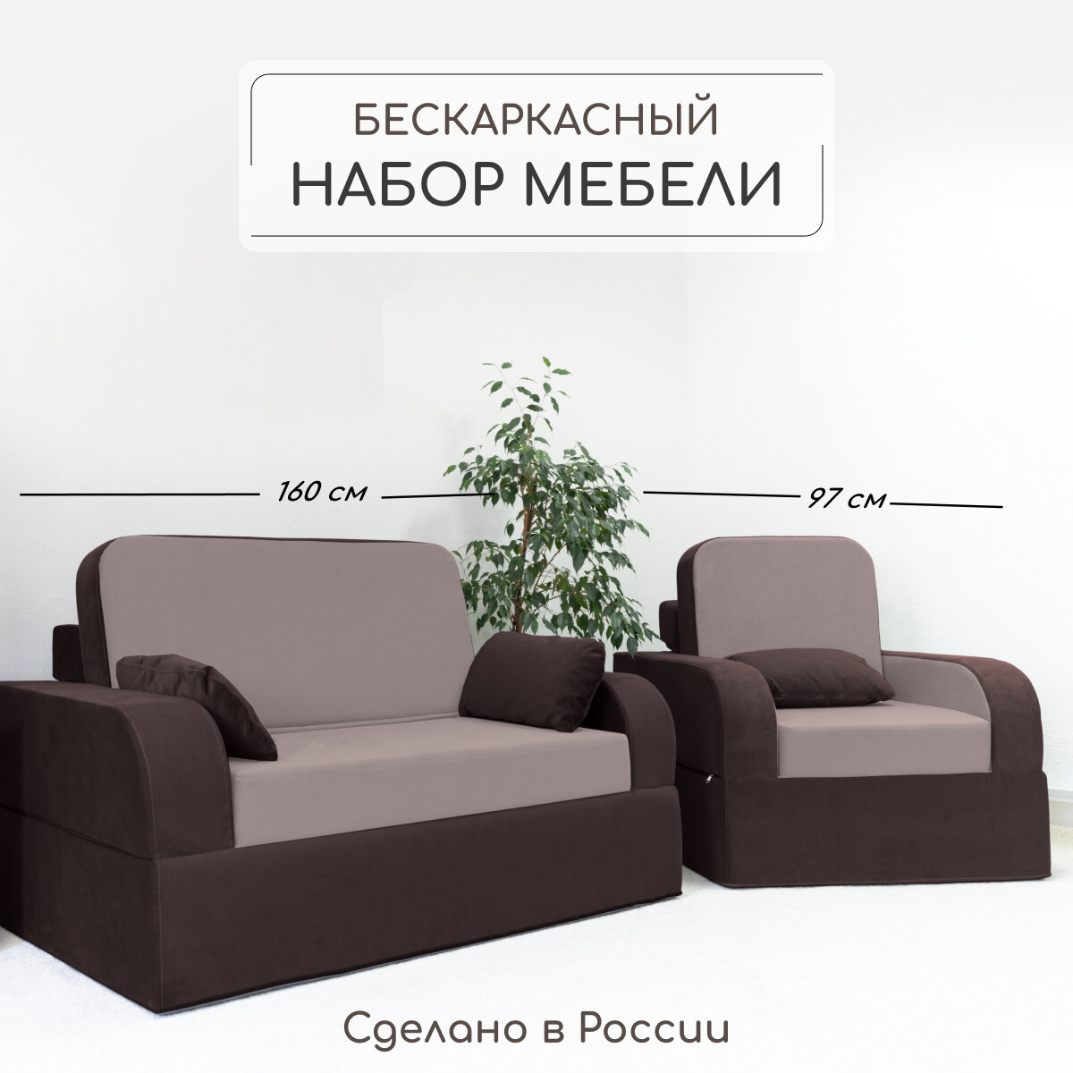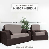 Купить Комплект мебели Диван и Кресло раскладной, бескаркасный, набор коричневый с доставкой по всей России. Комплект мебели Диван и Кресло раскладной, бескаркасный, набор коричневый: сравнение цен, характеристики, фото, актуальное наличие и цены.