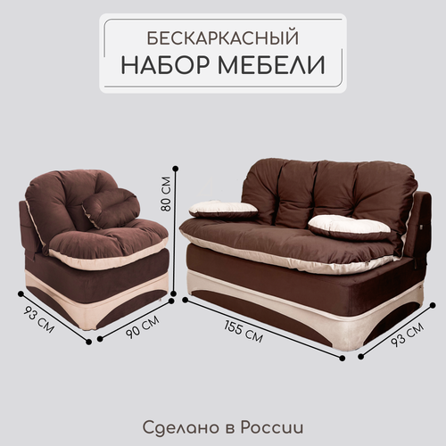 Купить Комплект мебели Диван и Кресло раскладной, бескаркасный, набор коричневый с доставкой по всей России. Комплект мебели Диван и Кресло раскладной, бескаркасный, набор коричневый: сравнение цен, характеристики, фото, актуальное наличие и цены.
