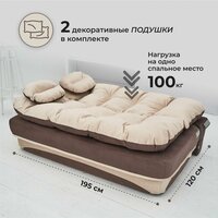 Размеры дивана (ШхВхГ): 195х80х93 см, спальное место 195х120 см Размеры кресла (ШхВхГ): 90х80х95 см, спальное место 90х225 см