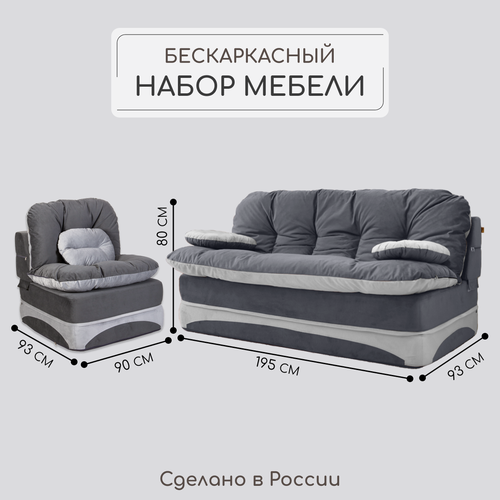 Купить Комплект мебели Диван и Кресло раскладной, бескаркасный, набор серый с доставкой по всей России. Комплект мебели Диван и Кресло раскладной, бескаркасный, набор серый: сравнение цен, характеристики, фото, актуальное наличие и цены.