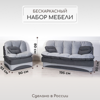 Купить Комплект мебели Диван и Кресло раскладной, бескаркасный, набор серый с доставкой по всей России. Комплект мебели Диван и Кресло раскладной, бескаркасный, набор серый: сравнение цен, характеристики, фото, актуальное наличие и цены.
