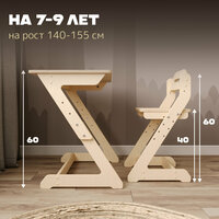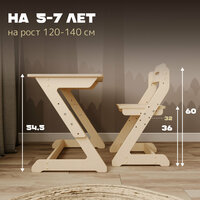 Детский растущий комплект СТОЛ и СТУЛ от «Pappado», на рост от 105 до 155 см, шлифованный: сравнение цен, характеристики, фото, актуальное наличие и цены.