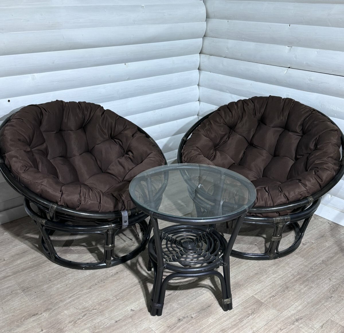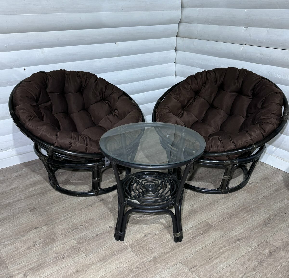Купить Комплект мебели два кресла Папасан 100 см и столик Багама из натурального ротанга венге с доставкой по всей России.