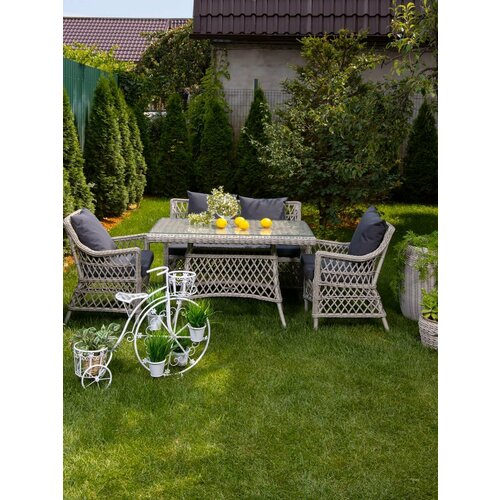 Комплект мебели Гайс от Malacca серый с темно-серыми подушками: сравнение цен, характеристики, фото, актуальное наличие и цены.