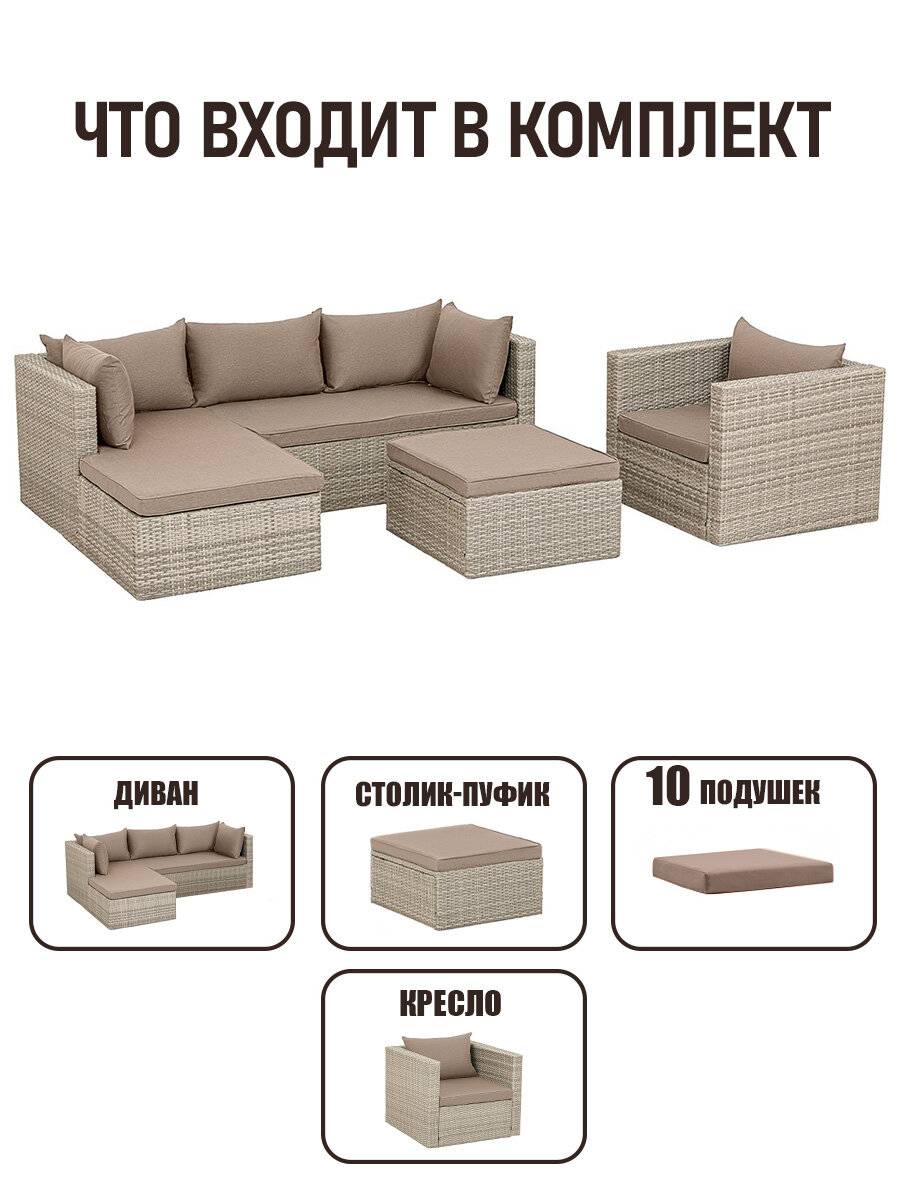 Комплект мебели из искусственного ротанга Гардини Релакс для дачи и сада, серый: сравнение цен, характеристики, фото, актуальное наличие и цены.