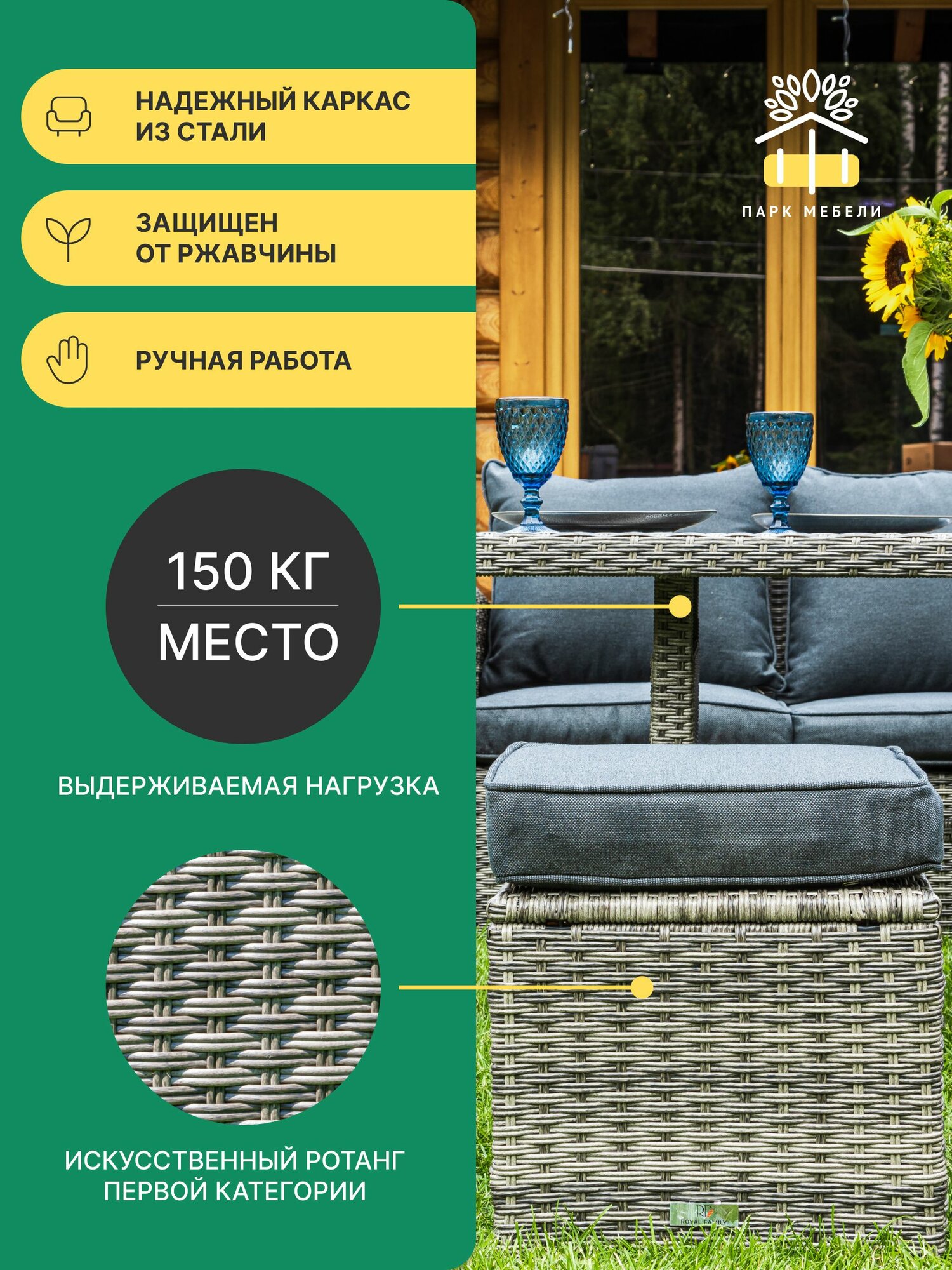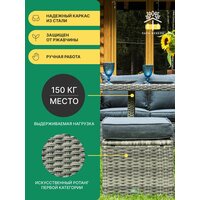 Тип ротанга: плоский Цвет подушек: серый Наличие креплений на чехлах подушек зависит от партии и не является обязательным атрибутом товара.