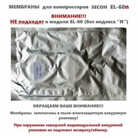 Для компрессоров SECOH EL-60n Используя мембраны в пыле-влагозащитной упаковке, Вы можете произвести замену изнашиваемых частей компрессора. Замена производится в течении короткого времени. Вам не придется нести затраты на приобретение нового компрессора. Внимание! Мембраны апечатаны в вакуумную упаковку!