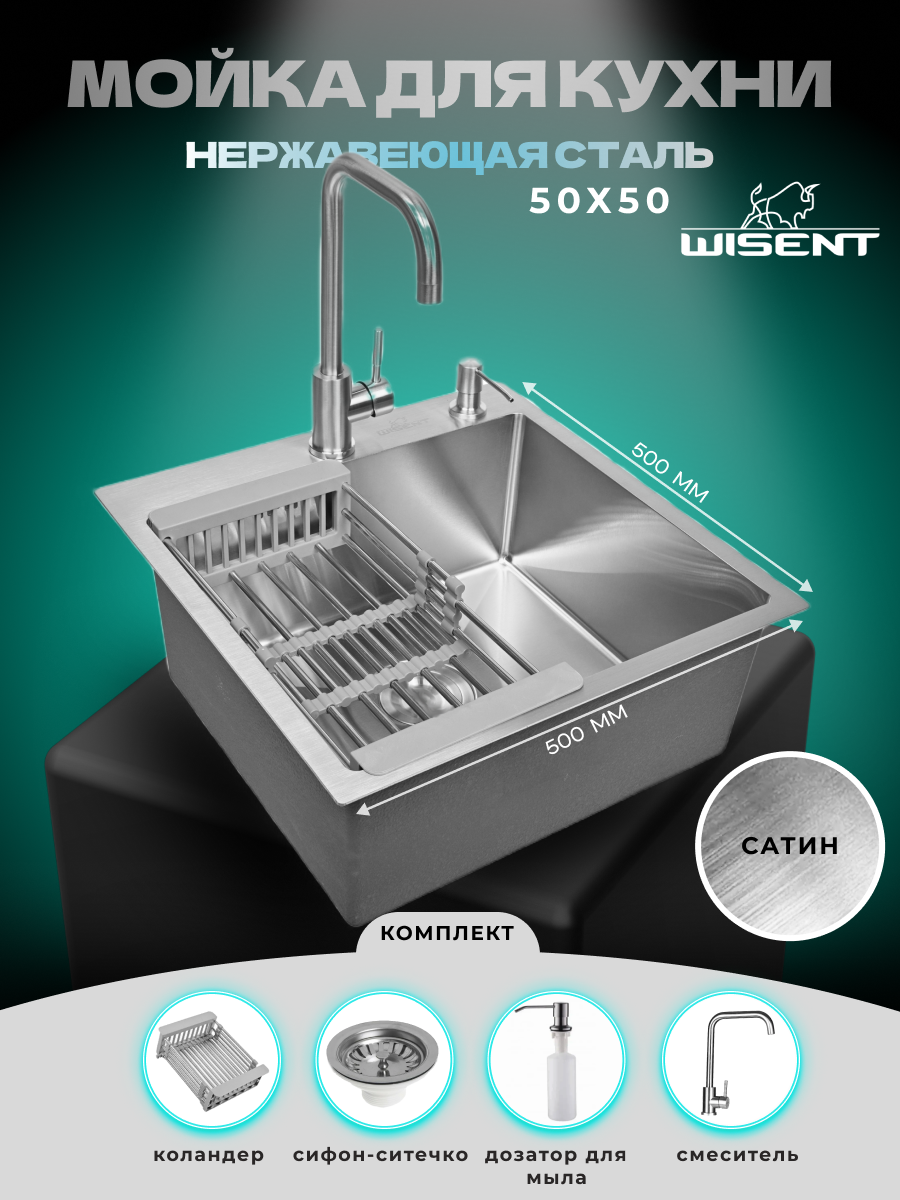 Мойка для кухни нержавеющая 50х50. Смеситель, сифон с ситечком, дозатор, коландер.: сравнение цен, характеристики, фото, актуальное наличие и цены.