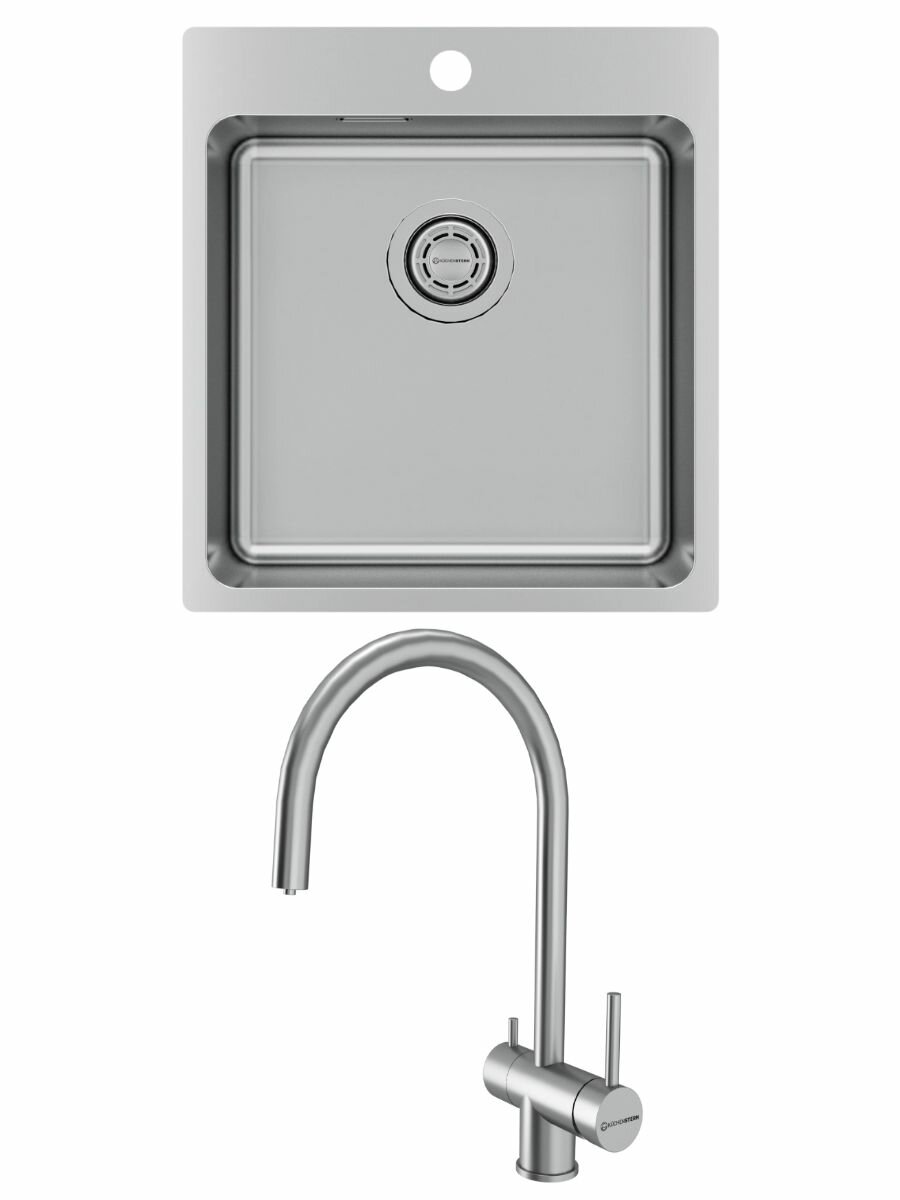 Комплект: Мойка для кухни KUCHENSTERN HERD 45 R-25 + Смеситель DRIM-F из нержавеющей стали AISI 304 + ролл-мат: сравнение цен, характеристики, фото, актуальное наличие и цены.