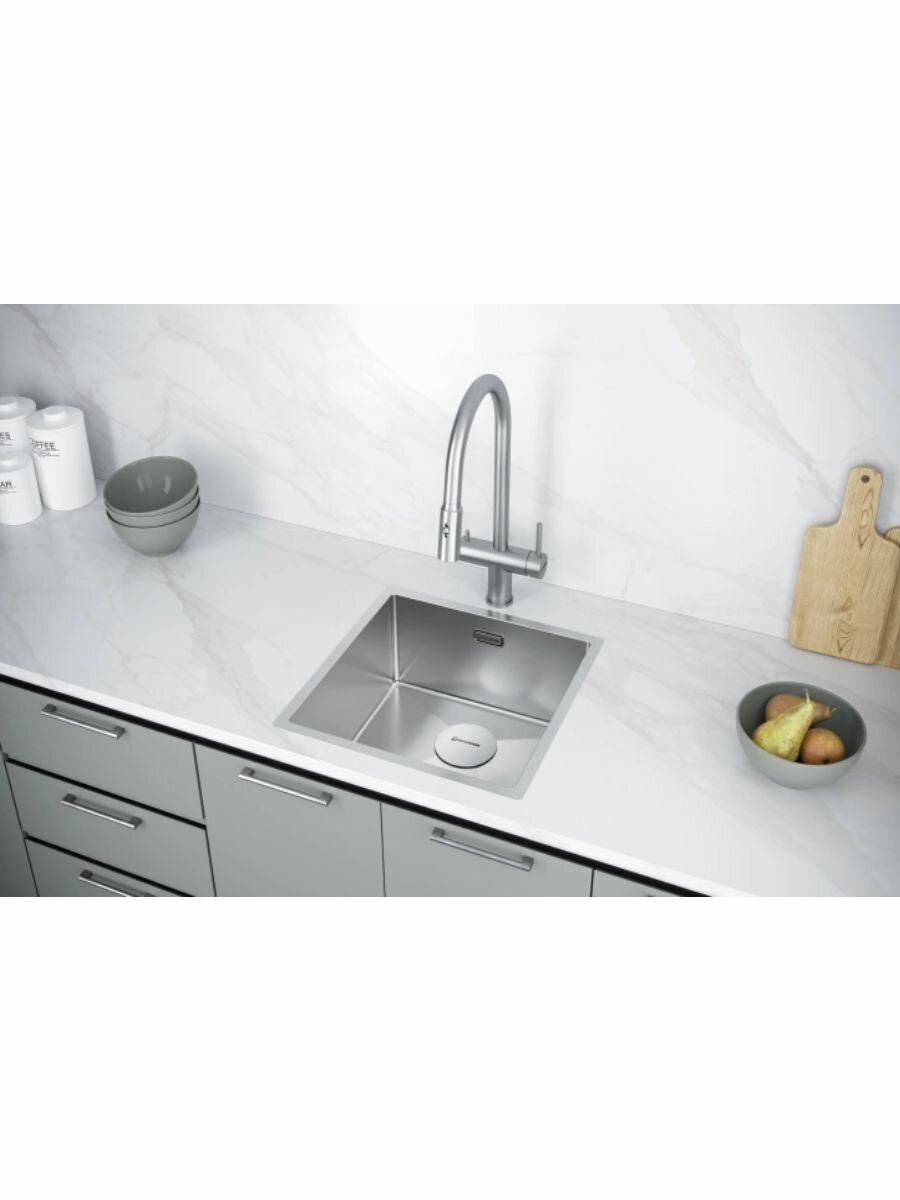 Купить Комплект: Мойка для кухни KUCHENSTERN KRAFT 45 R-10 + Смеситель FOKUS-FS из нержавеющей стали AISI 304, универсальный монтаж + ролл-мат с доставкой по всей России.