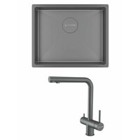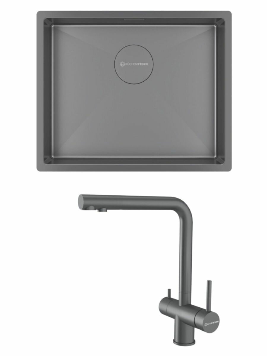 Комплект: Мойка для кухни KUCHENSTERN KRAFT 60 GM PVD R-10 + Смеситель FOKUS-FS PVD GM, универсальный монтаж + ролл-мат: сравнение цен, характеристики, фото, актуальное наличие и цены.