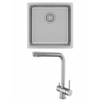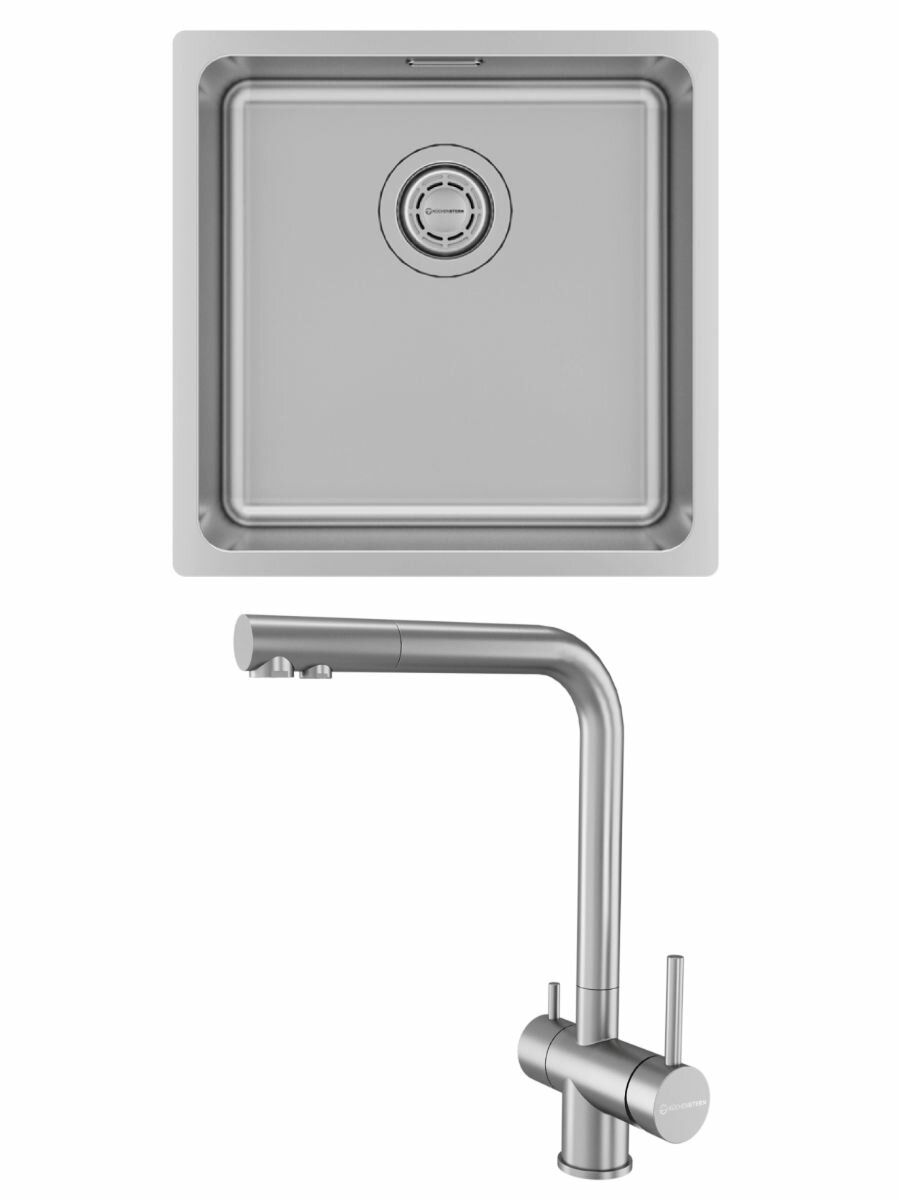 Комплект: Мойка для кухни KUCHENSTERN MULTI 45 R-25 + Смеситель FOKUS-FS из нержавеющей стали AISI 304, универсальный монтаж + ролл-мат: сравнение цен, характеристики, фото, актуальное наличие и цены.