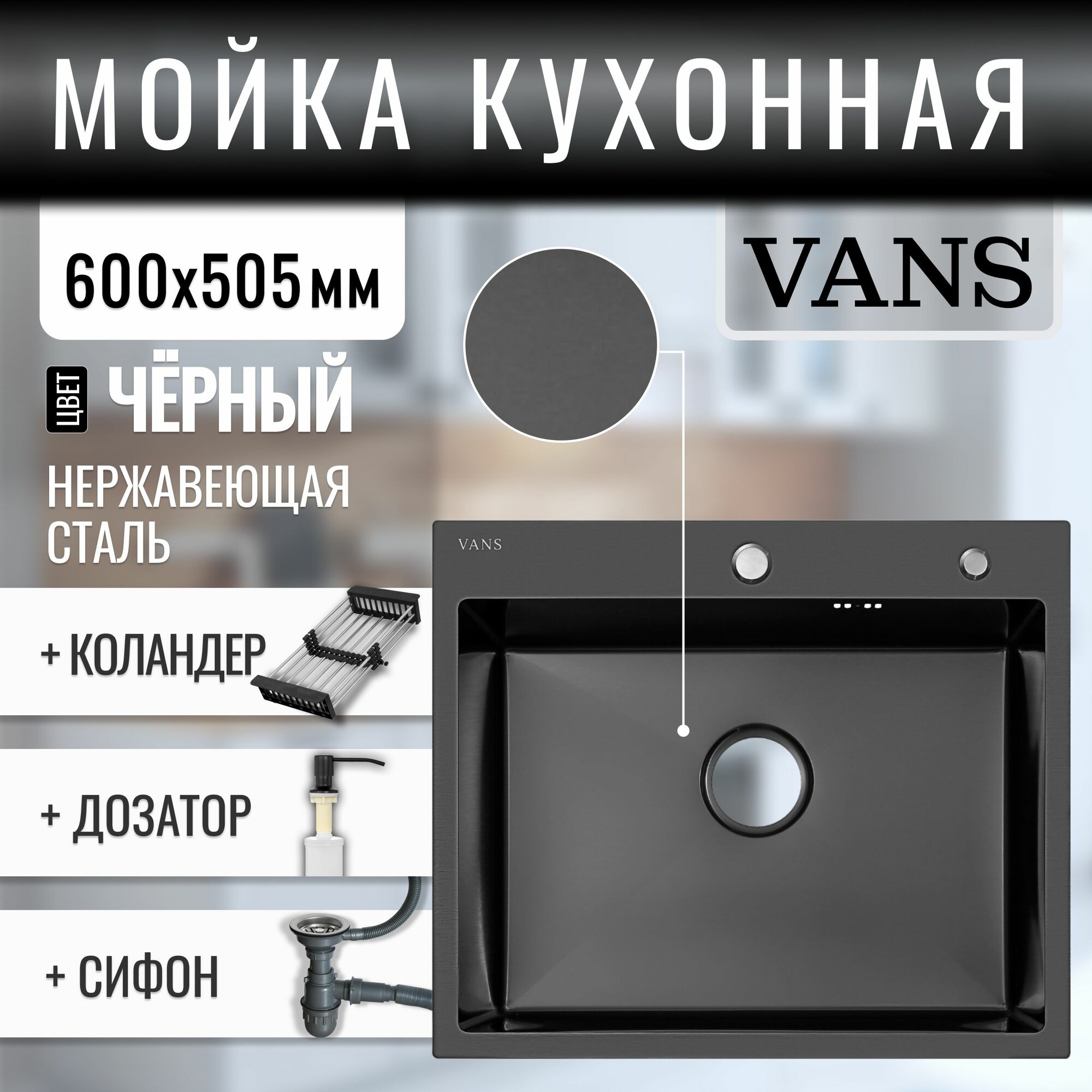 Купить Мойка для кухни VANS» 600*505*200 мм Black с коландером и дозатором с доставкой по всей России. Мойка для кухни VANS» 600*505*200 мм Black с коландером и дозатором: сравнение цен, характеристики, фото, актуальное наличие и цены.