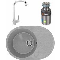 Купить Комплект Мойка Practik PR-M 610-003 светло-серая / Смеситель MEGA Didim MG-CM107 хром / Измельчитель Bort Titan 4000 Plus с доставкой по всей России.