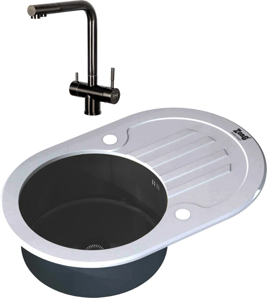 Купить Комплект Мойка Zorg Glass GL-7851-OV-WHITE-GRAFIT графит / Смеситель Inox SZR-7039 GRAFIT графит с доставкой по всей России.
