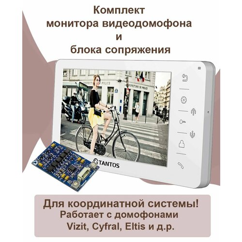 Комплект монитора видеодомофона Tantos Amelie white + мск-слим блок сопряжения/ домофон для дома (для координатных систем типа CYFRAL, ETLIS, метаком, VIZIT): сравнение цен, характеристики, фото, актуальное наличие и цены.