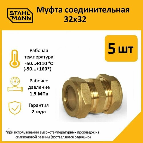 Комплект муфт соединительных для водопроводных труб Stahlmann 32х32 EF, цвет желтый, 5 шт.: сравнение цен, характеристики, фото, актуальное наличие и цены.