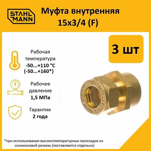Комплект муфт соединительных для водопроводных труб Stahlmann F 15х3/4 EF, цвет желтый, 3 шт.: сравнение цен, характеристики, фото, актуальное наличие и цены.