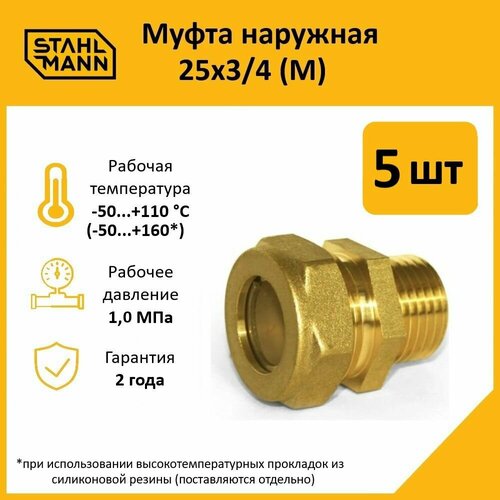 Комплект муфт соединительных для водопроводных труб Stahlmann M 25х3/4 EF, цвет желтый, 5 шт.: сравнение цен, характеристики, фото, актуальное наличие и цены.