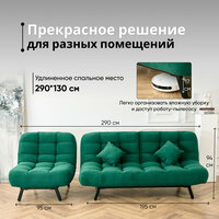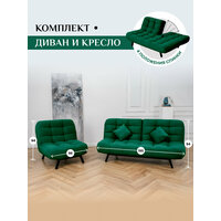 Комплект мягкой мебели Диван и Кресло 302 механизм клик-кляк, материал износостойкий велюр, цвет изумруд