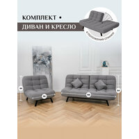 Комплект мягкой мебели Диван и Кресло 302 механизм клик-кляк, материал износостойкий велюр, цвет серый