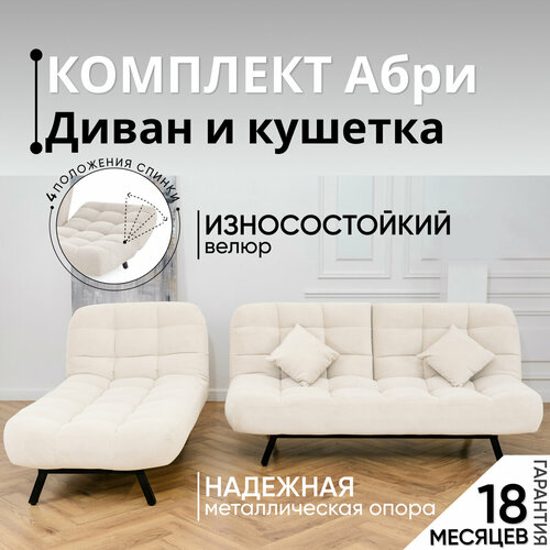 Купить Комплект мягкой мебели Диван и кушетка 311 механизм клик-кляк, материал износостойкий велюр, цвет молочный с доставкой по всей России.