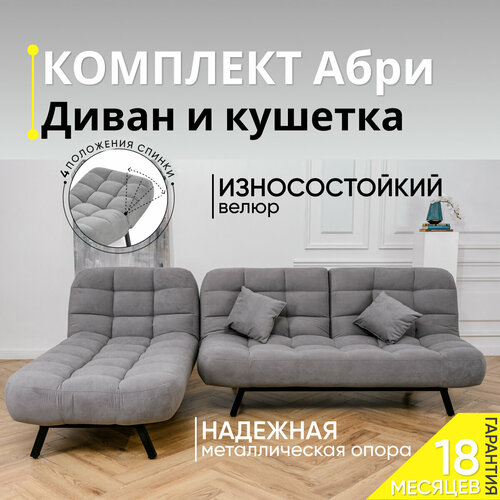 Купить Комплект мягкой мебели Диван и кушетка 311 механизм клик-кляк, материал износостойкий велюр, цвет серый с доставкой по всей России.