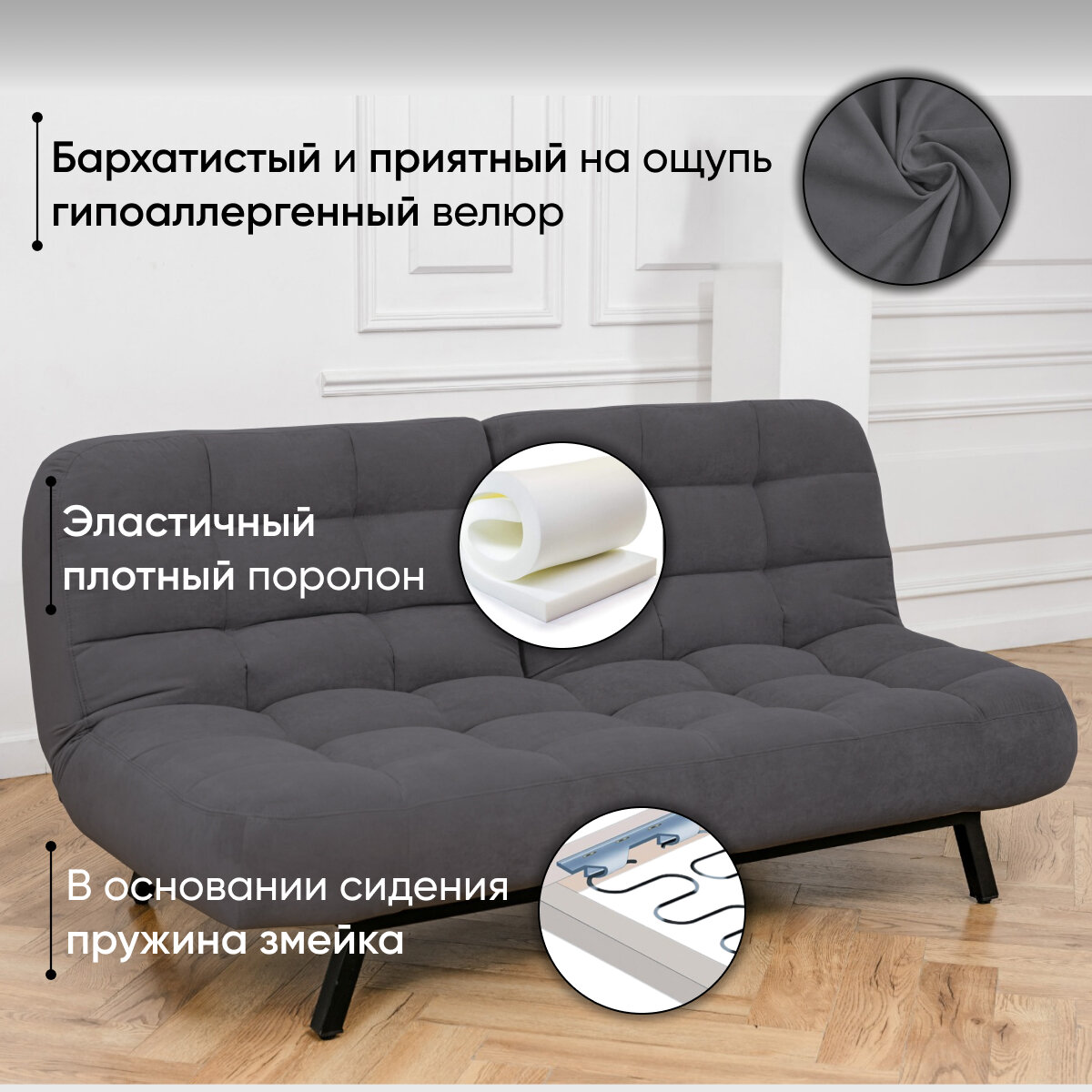 Комплект мягкой мебели Диван и Пуф 301 механизм клик-кляк, материал износостойкий велюр, цвет графит: сравнение цен, характеристики, фото, актуальное наличие и цены.