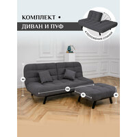 Комплект мягкой мебели Диван и Пуф 301 механизм клик-кляк, материал износостойкий велюр, цвет графит