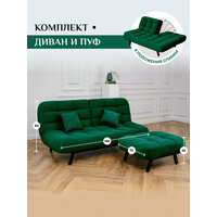 Комплект мягкой мебели Диван и Пуф 301 механизм клик-кляк, материал износостойкий велюр, цвет изумруд