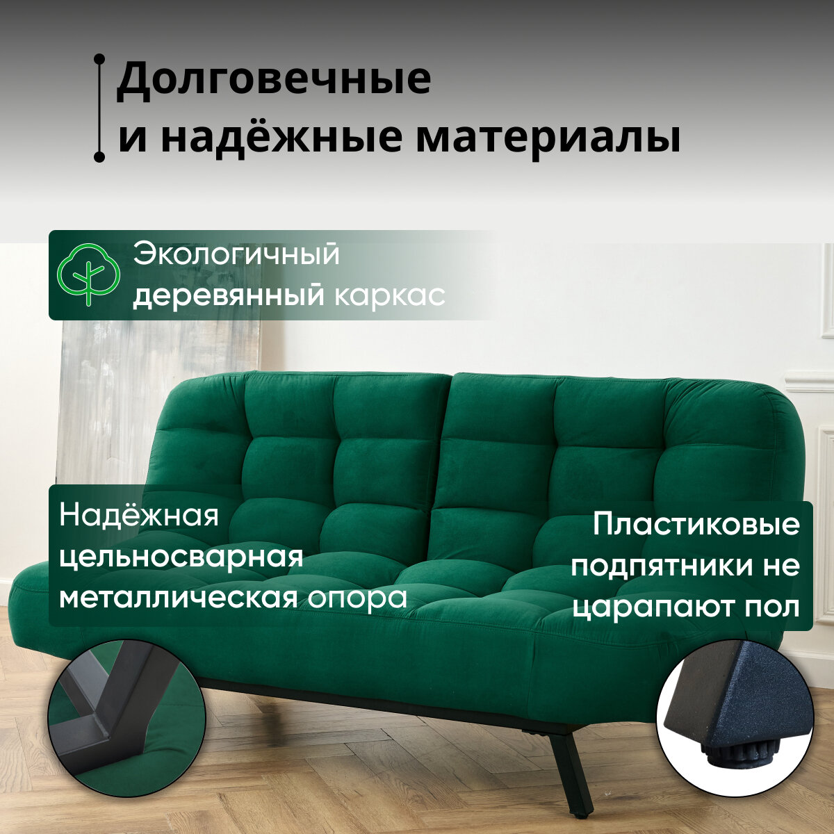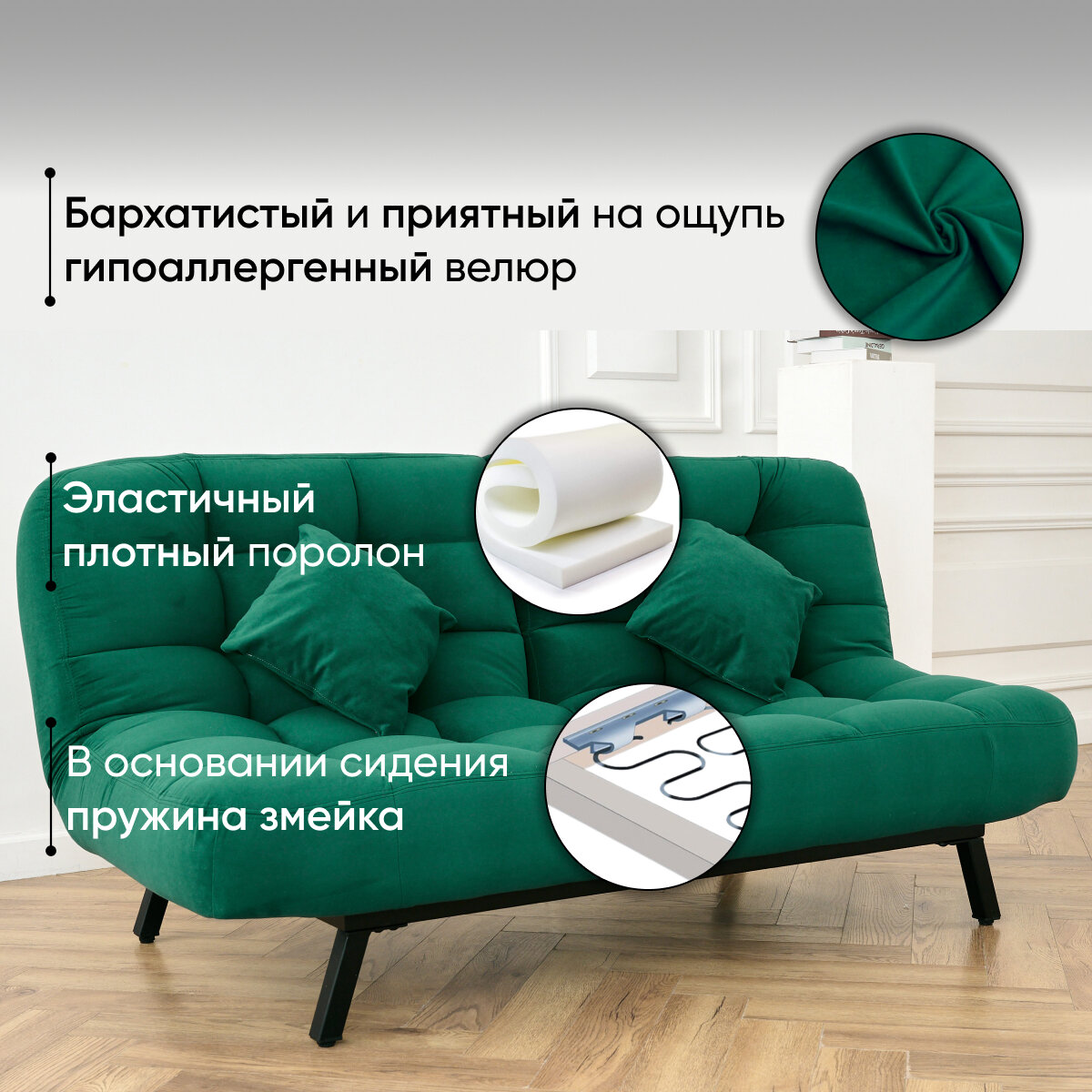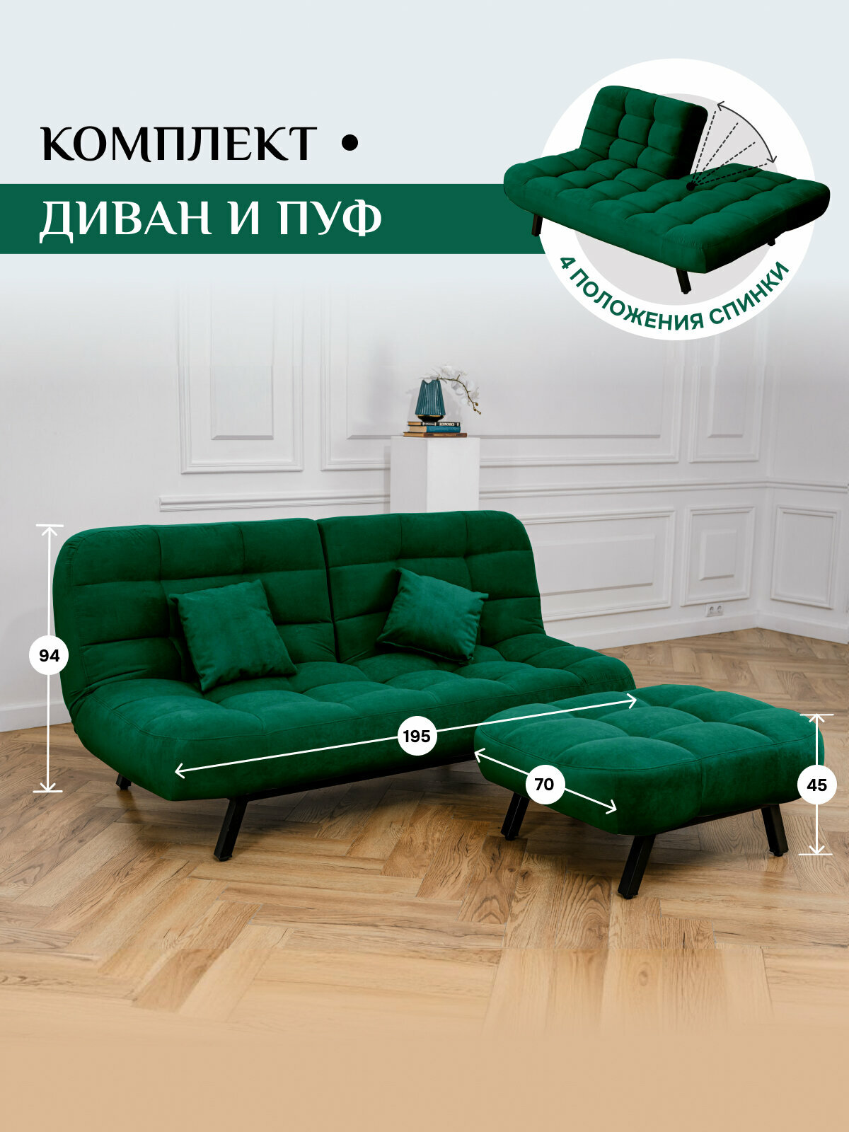 Купить Комплект мягкой мебели Диван и Пуф 301 механизм клик-кляк, материал износостойкий велюр, цвет изумруд с доставкой по всей России.