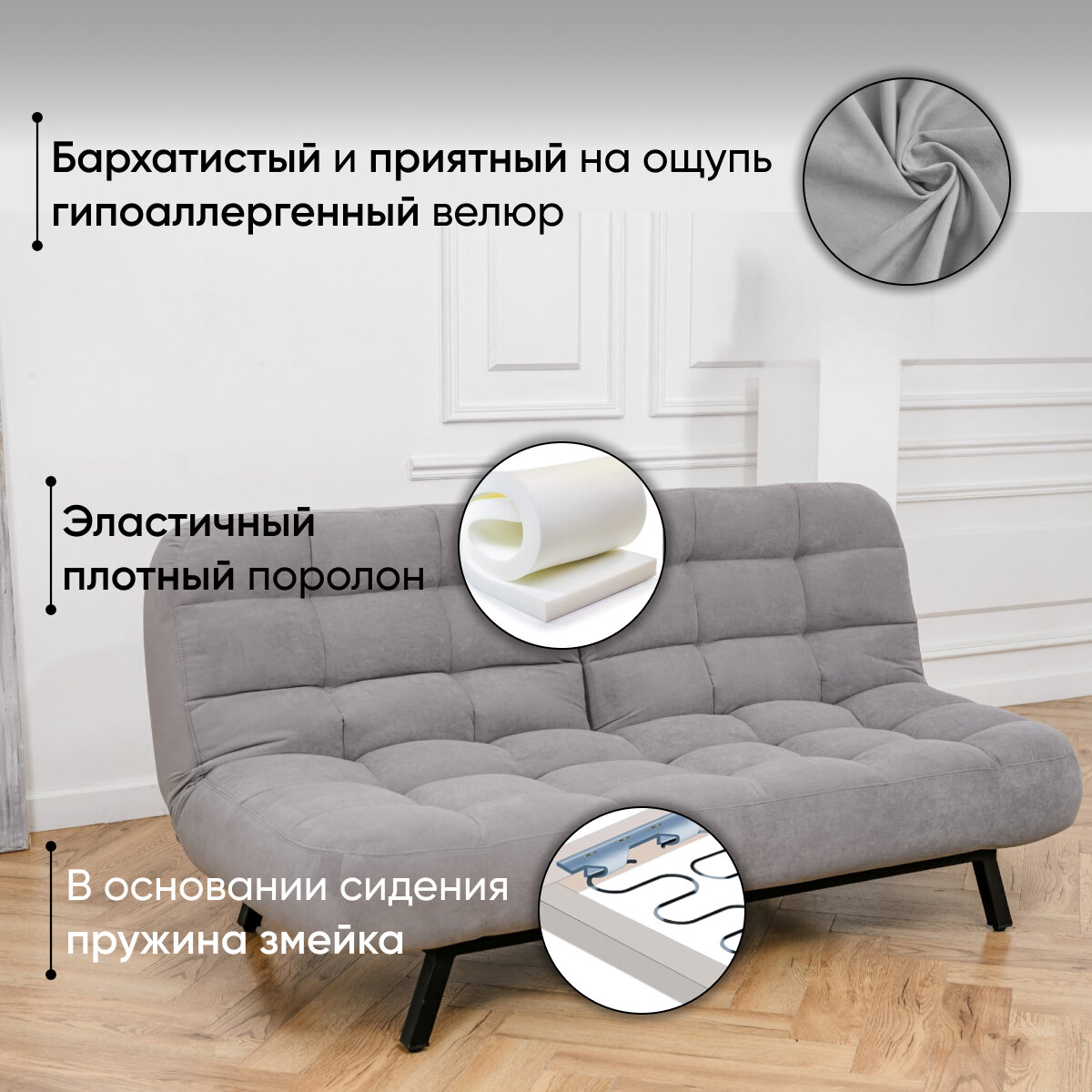 Комплект мягкой мебели Диван и Пуф 301 механизм клик-кляк, материал износостойкий велюр, цвет серый: сравнение цен, характеристики, фото, актуальное наличие и цены.
