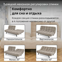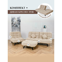 Комплект мягкой мебели Диван, кресло и пуф 303 механизм клик-кляк, материал износостойкий велюр, цвет бежевый