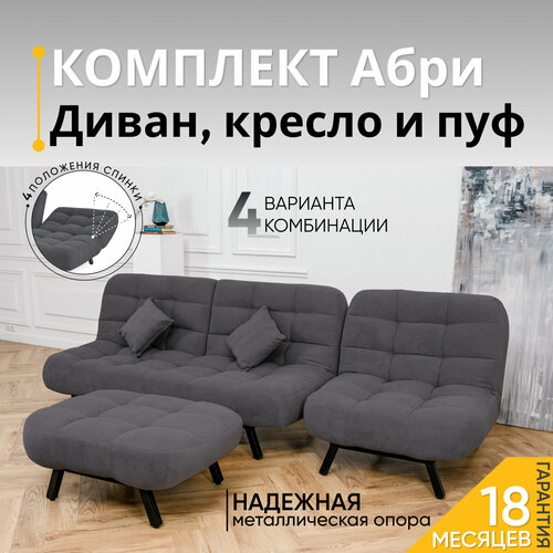 Комплект мягкой мебели Диван, кресло и пуф 303 механизм клик-кляк, материал износостойкий велюр, цвет графит: сравнение цен, характеристики, фото, актуальное наличие и цены.