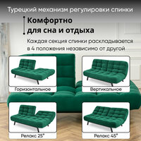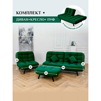 Купить Комплект мягкой мебели Диван, кресло и пуф 303 механизм клик-кляк, материал износостойкий велюр, цвет изумрудный с доставкой по всей России.