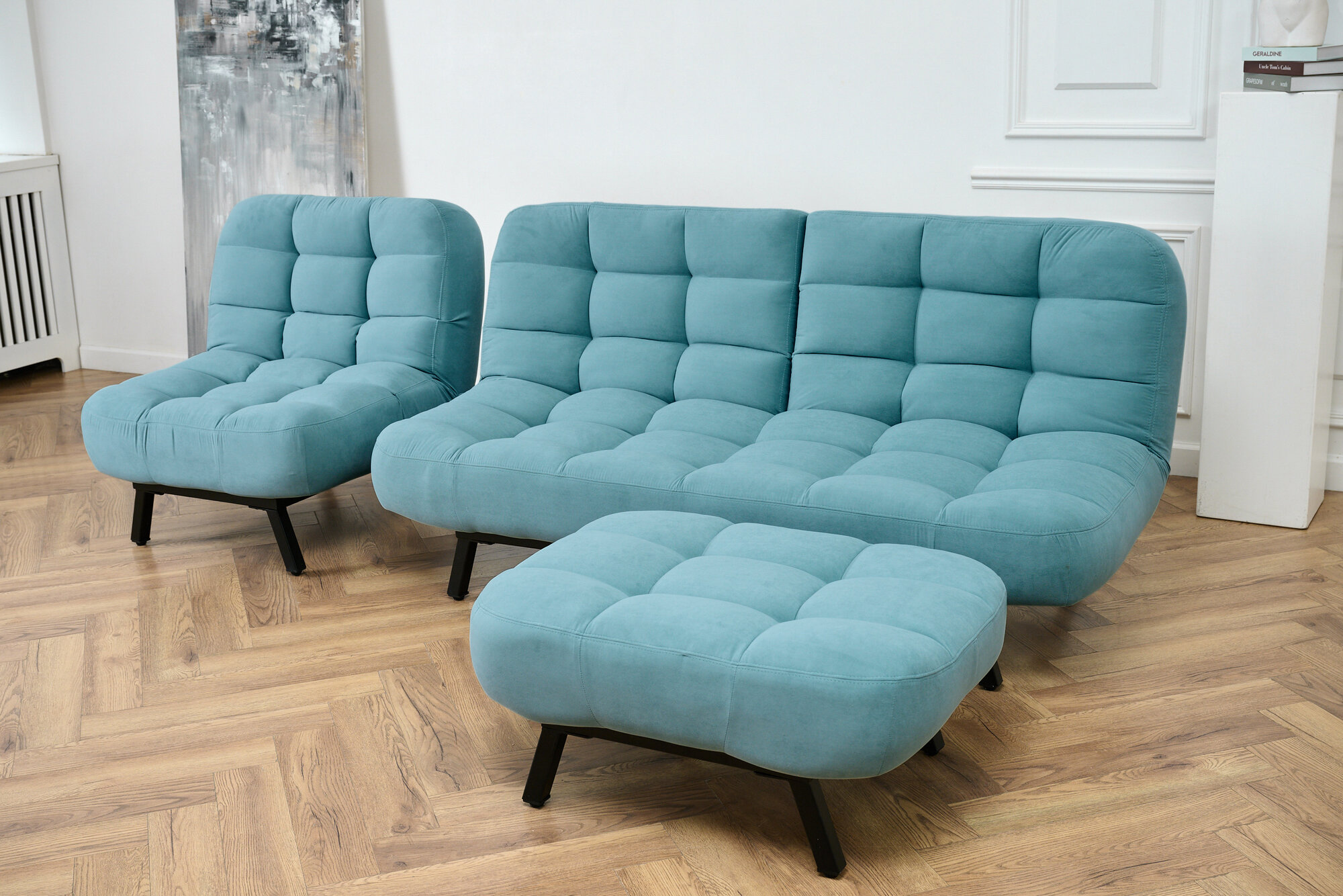 Комплект мягкой мебели Диван, кресло и пуф 303 механизм клик-кляк, материал износостойкий велюр, цвет мятный: сравнение цен, характеристики, фото, актуальное наличие и цены.