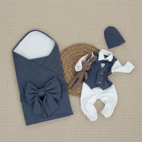 Невероятно стильный, мягкий и в то же время нарядный комплект – отличный вариант для выписки из роддома летом.