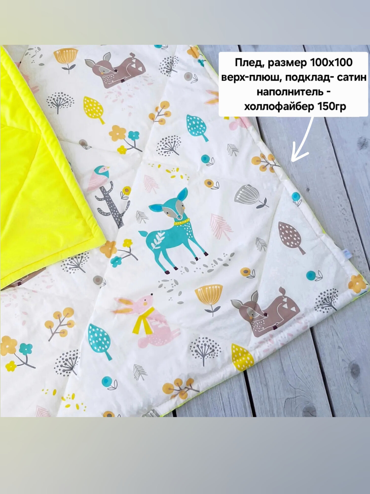 Комплект из 5 позиций: - плюшевый плед, размер 100х100, верх- плюш, подклад- сатин (100% хлопок), утепление- холлофайбер 150гр - бант на резинке, украшен кружевом и стразами - комбинезон на кнопках, размер 56, хлопок 100% (интерлок), швы наружу, антицарапки - колпачок с ушками, размер 38, хлопок 100% (интерлок)