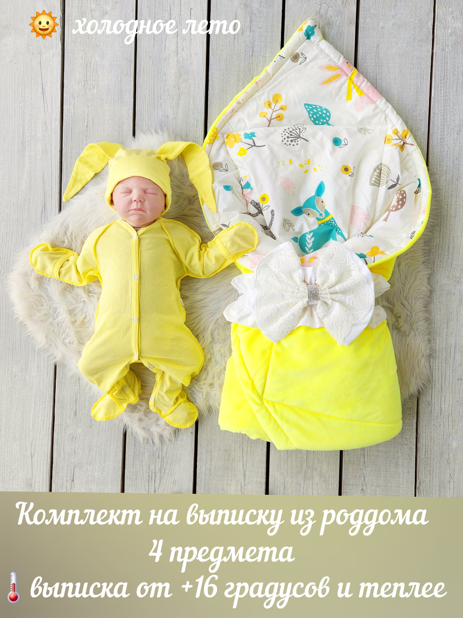 Купить Комплект на выписку из роддома, 4 предмета, лето, желтый, размер 56 с доставкой по всей России. Комплект на выписку из роддома, 4 предмета, лето, желтый, размер 56: сравнение цен, характеристики, фото, актуальное наличие и цены.
