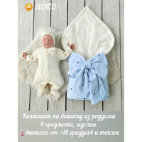 Комплект на выписку из роддома, 4 предмета, размер 56, муслин, молочный/голубой: сравнение цен, характеристики, фото, актуальное наличие и цены.