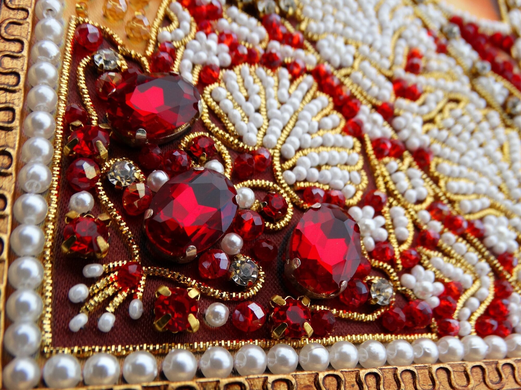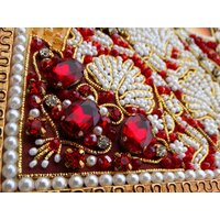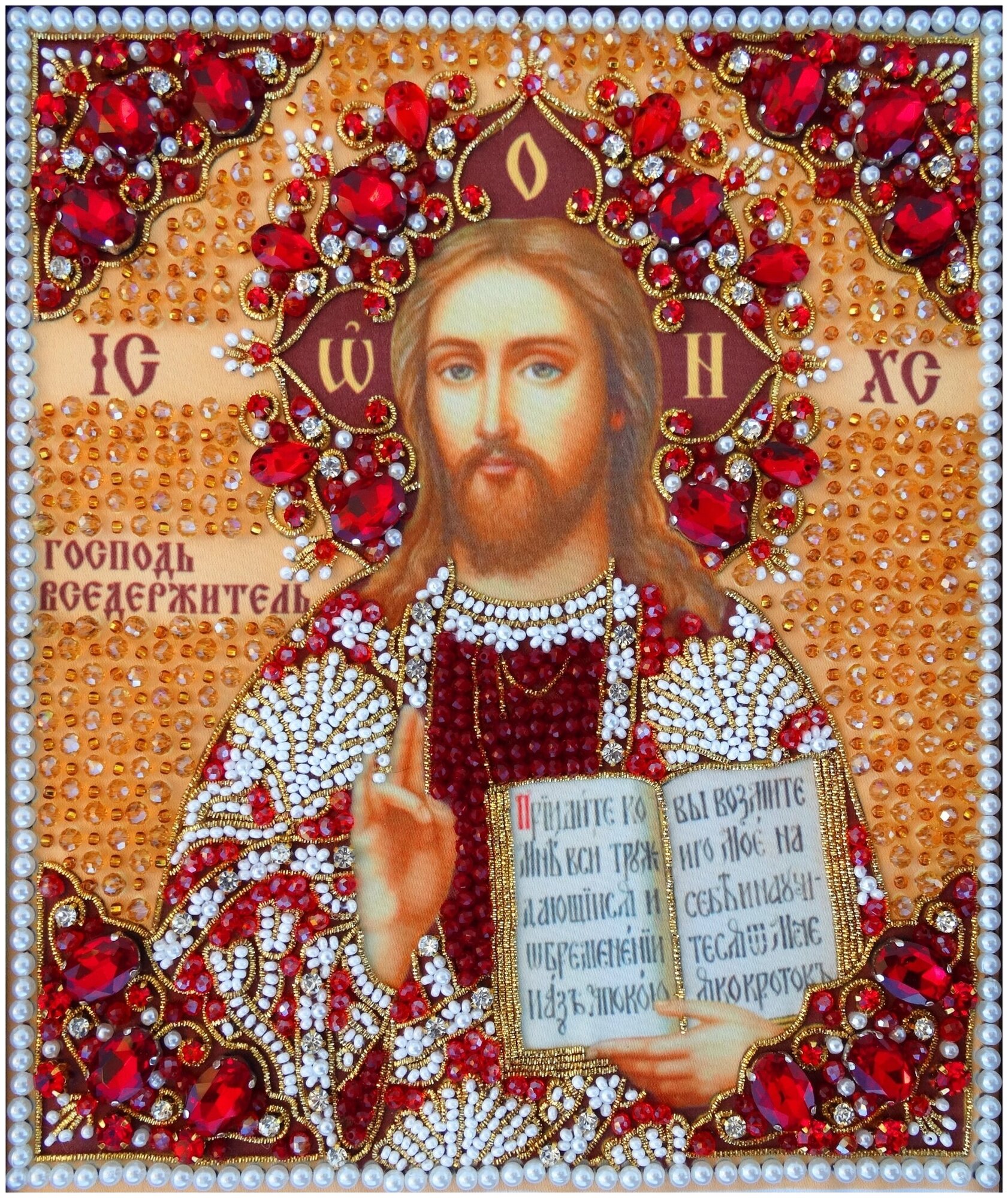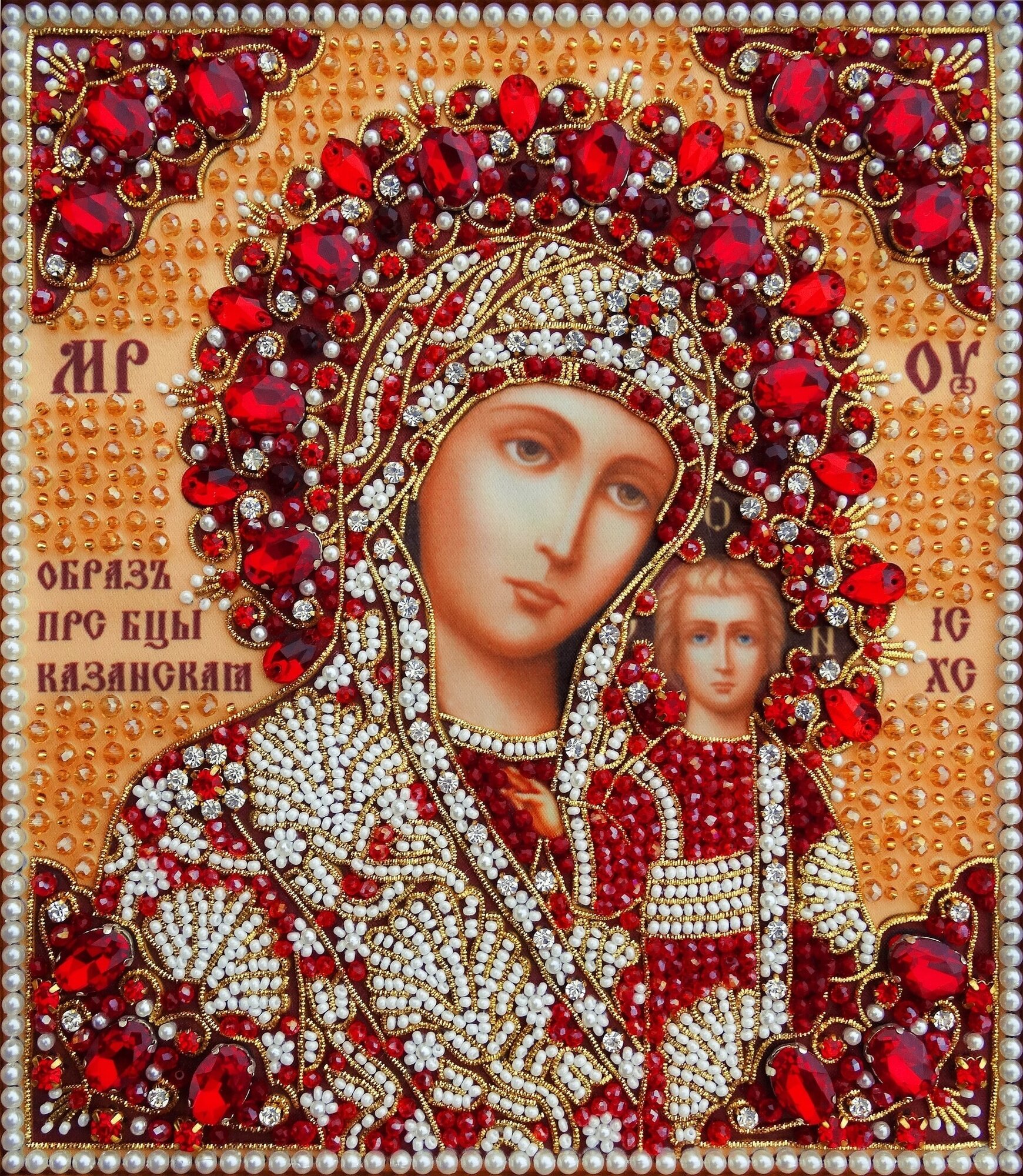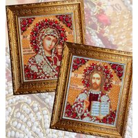 Набор для вышивания состоит из двух наборов: Богородица "Казанская" и Господь Вседержитель. Наборы состоят из тщательно отобранных материалов: хрустальные бусины, хрустальные стразы, хрустальные стразы в металлических цапах, акриловые бусины, трунцал (канитель), бисер, атласная ткань с нанесенной авторской схемой, подробная цветная инструкция с пошаговыми фото и описаниями, игла для вышивания. Размер каждой готовой работы одинаковый: 17,8 х 21 см.