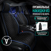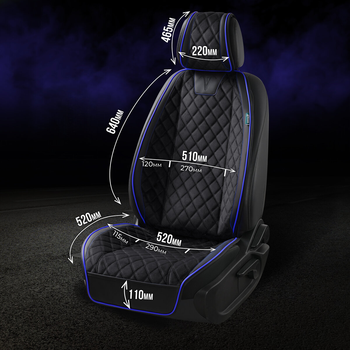 Купить Чехлы в машину на сиденья универсальные в салон 2 шт. Премиум модель DUPLEX. Черный/синяя строчка с доставкой по всей России.